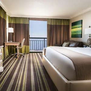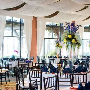 Escape the hustle and bustle at this serene hotel nestled on the outskirts of Galveston, offering unparalleled views of the tranquil coastline. Surrounded by lush gardens and swaying palm trees, guests can unwind on their private terrace and watch the sailboats drift by on the shimmering waters of the bay.